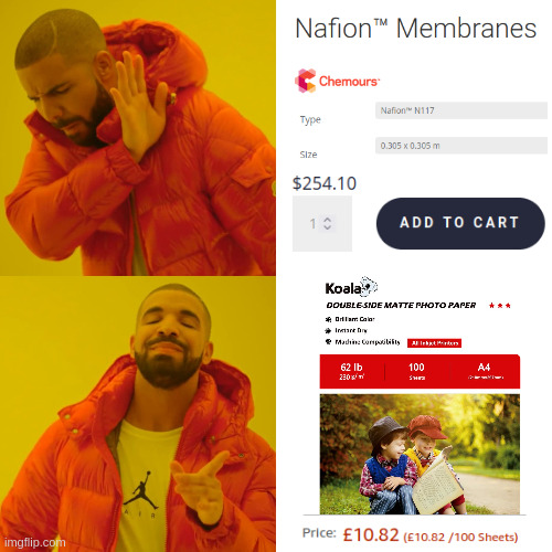1,477 EUR/m2 vs. 66 EUR/m2 (FuelCellStore and Amazon US)